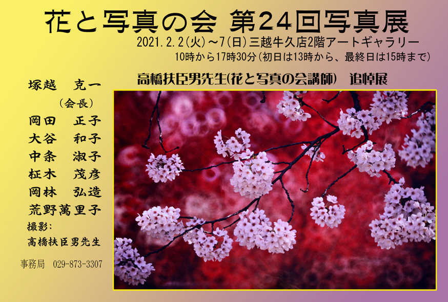 「花と写真の会」の展示も毎年2月に開催しています2021年は24回目の